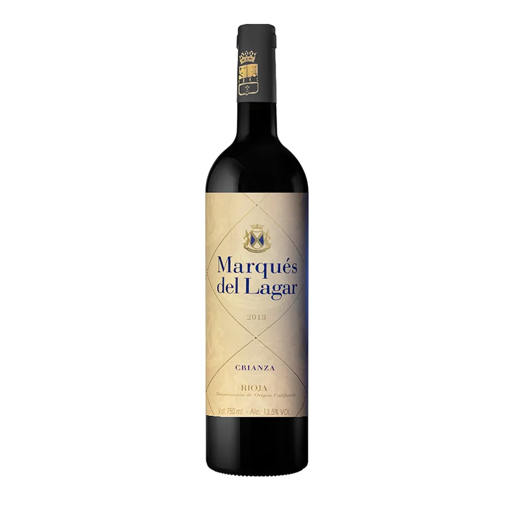 Crianza Rioja, cor azul violeta com tons rubi brilhantes. Elegante no nariz com os aromas frutados característicos da Tempranillo e tons muitos suaves de madeira e especiárias.